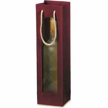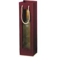 Bordeauxrote Tragetasche aus offener Welle mit Fenster und Tragekordel für 1 Flasche.
