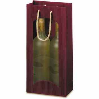 Bordeauxrote Tragetasche aus offener Welle mit Fenster und Tragekordel für 2 Flaschen.